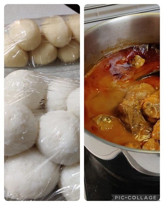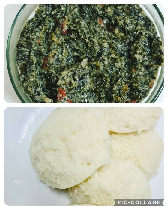 Raaka *maapähkinäjauhe*, tuore pinaatti, tuore tomaatti, sipuli, punainen chilli, tuore inkivääri ja suola.