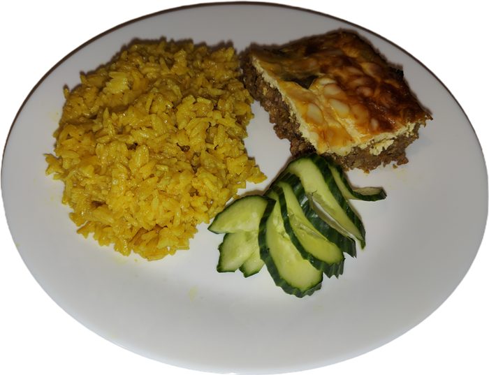 Meat pie täyte; Jauheliha, sipuli, suola, valkosipuli, curry, muskottipähkinä, kasvisliemikuutio, chili ja herne-maissi-porkkana pakaste vihannekset.